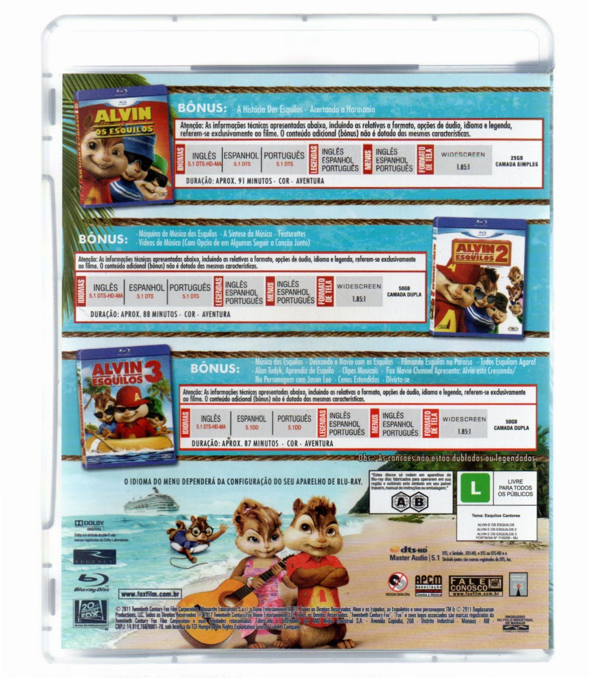 BLU-RAY ALVIN E OS ESQUILOS 1,2 E 3