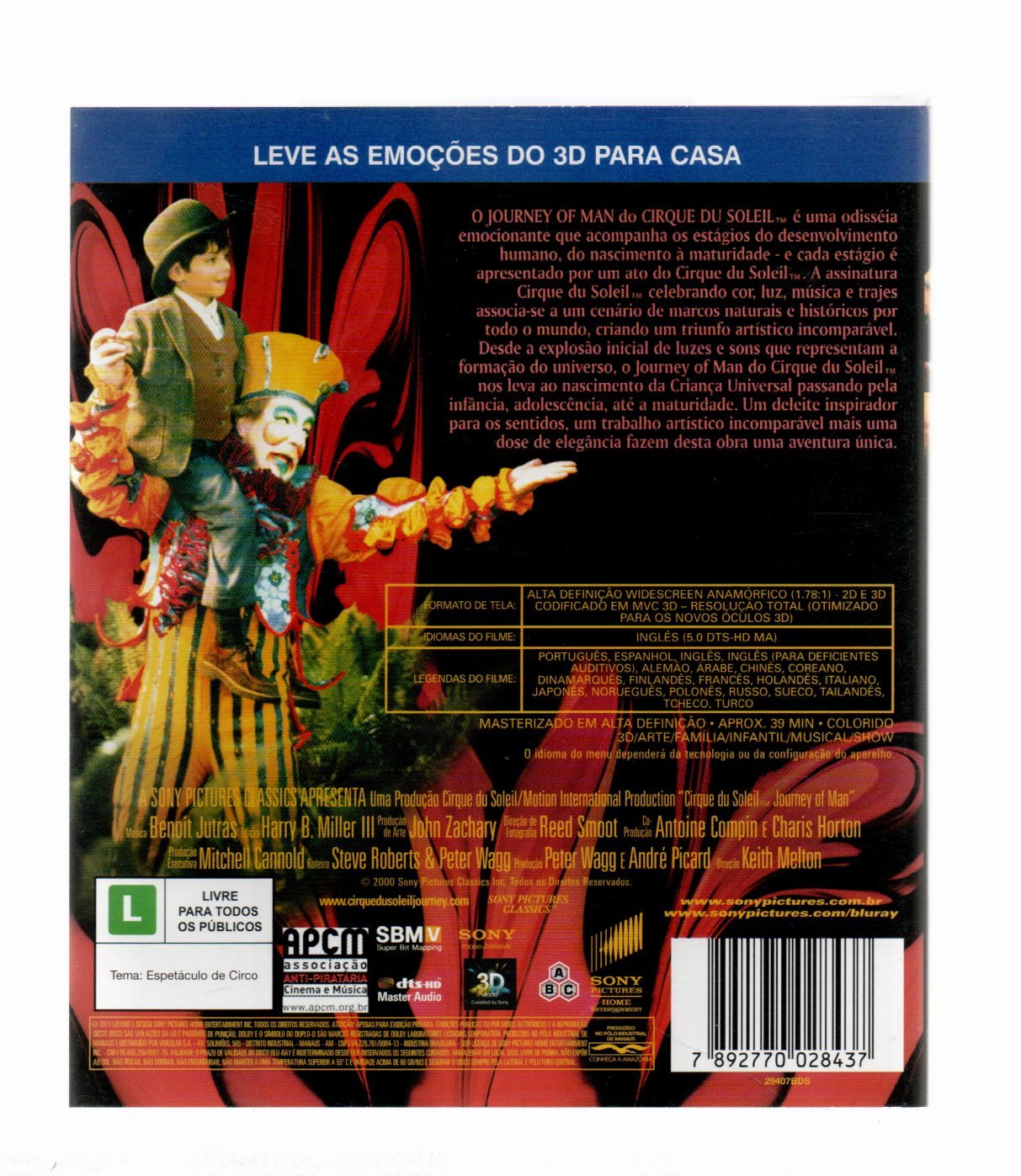 Blu-ray Cirque Du Soleil – Journey Of Man Em 3d