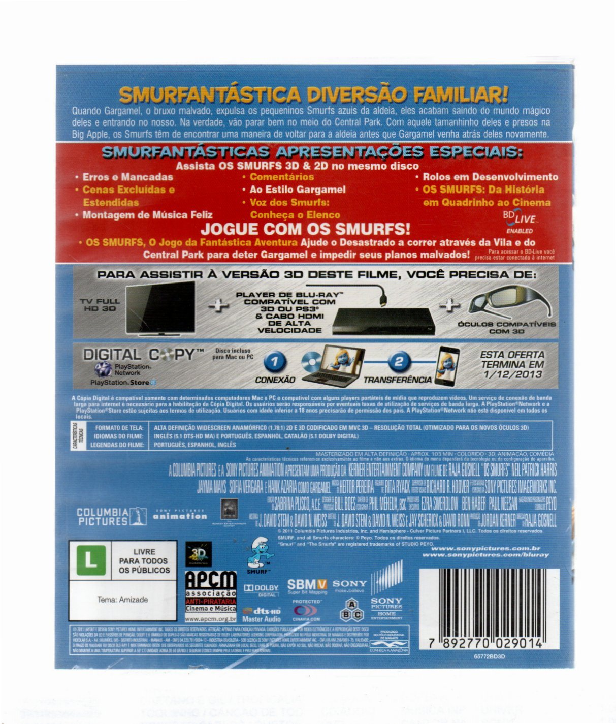 BLU-RAY / 3D + CÓPIA DIGITAL- OS SMURFS