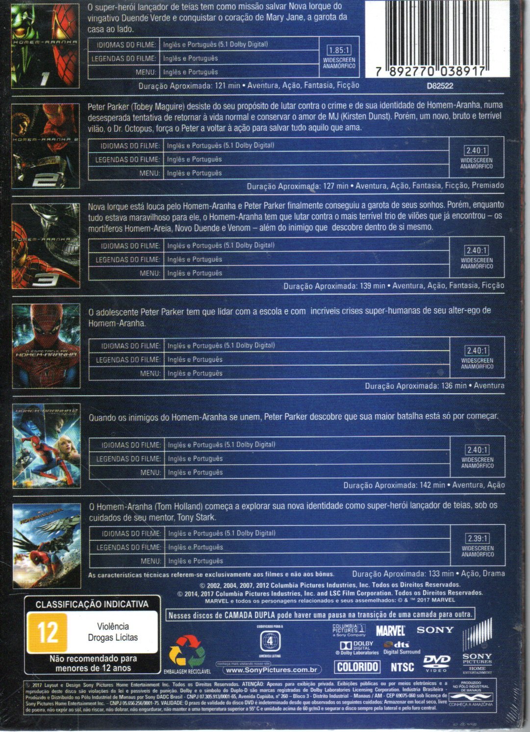 Box Dvd Homem Aranha – Coleção 6 Filmes