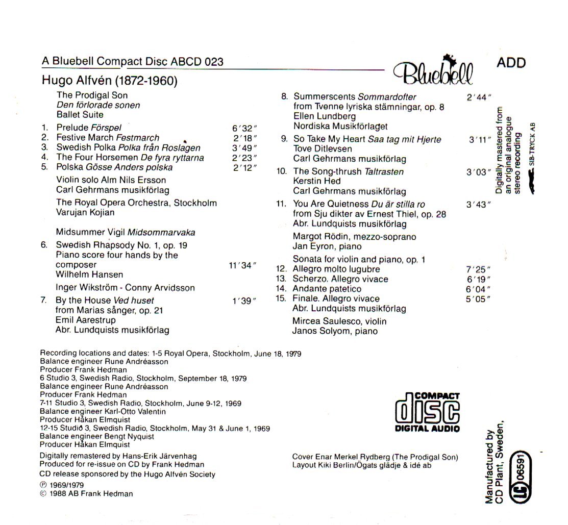 CD ALVEN THE PRODIGAL SIN VIOLIN SONATA – MIDSUMMER VIGIL PIANO VERSION FIVE SONGS