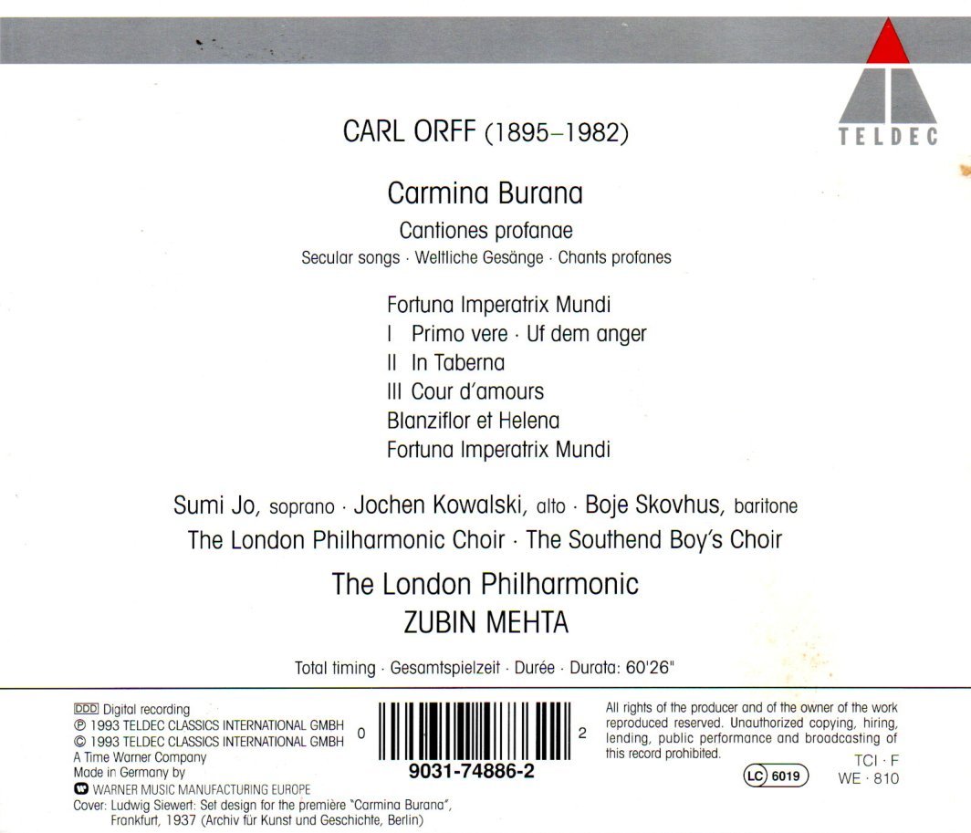 CD CARMINA BURANA: JO KOWALSKI SHOVHUS MEHTA