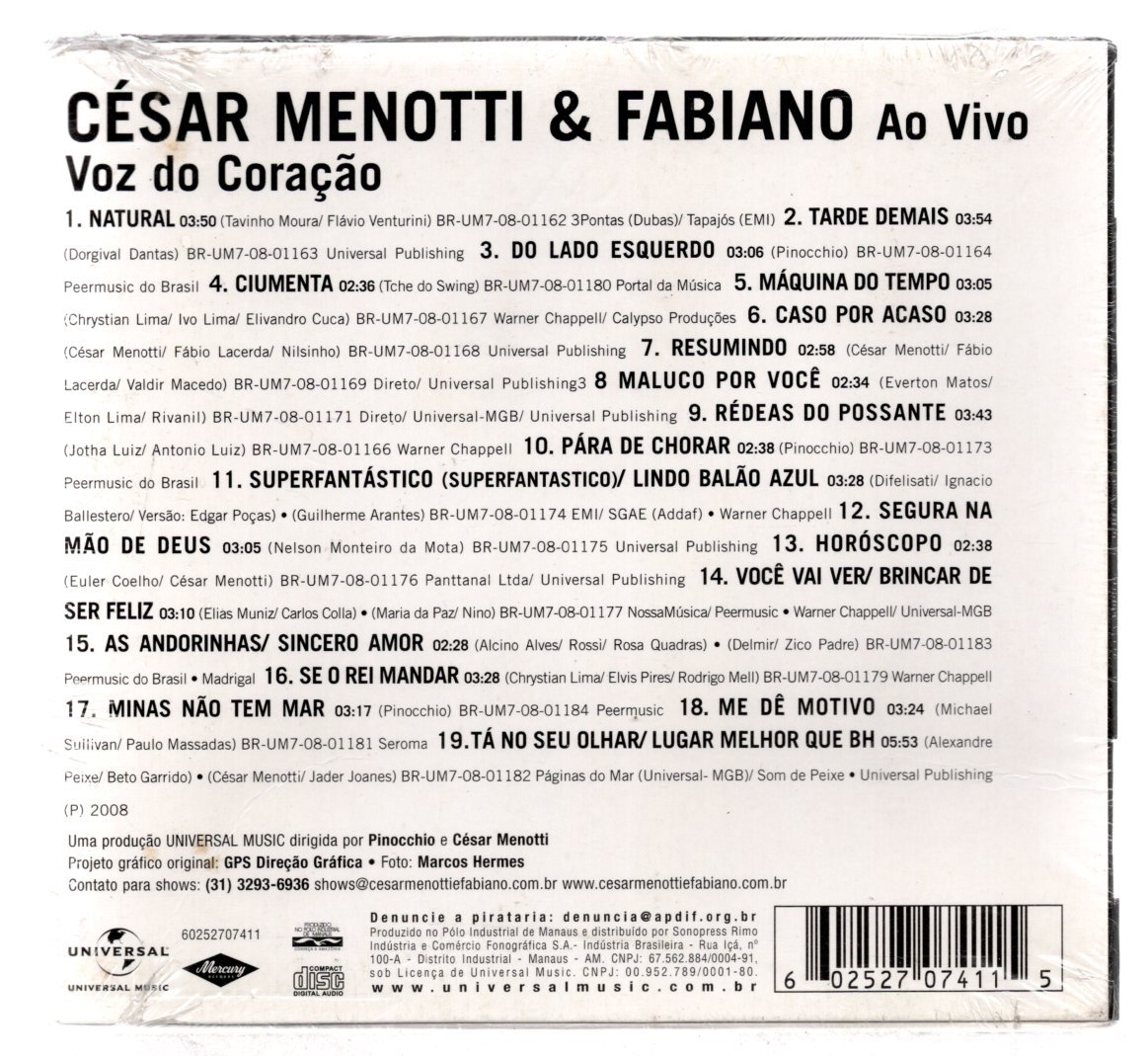 Cd César Menotti & Fabiano – Ao Voz Do Coração Digipack Novo