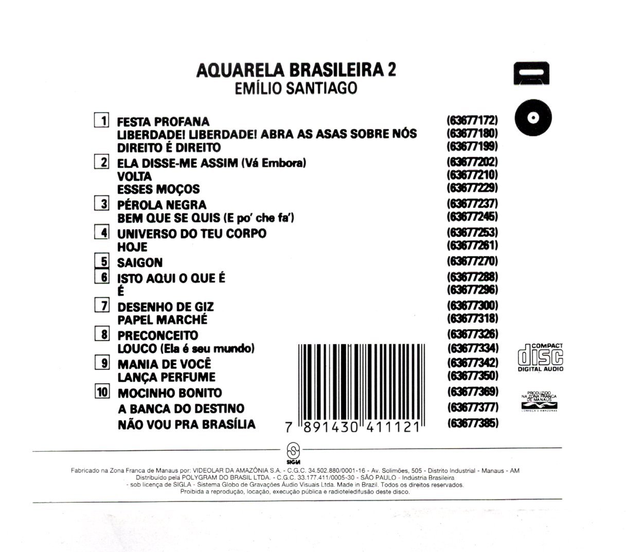 Cd Emílio Santiago – Aquarela Brasileira 2
