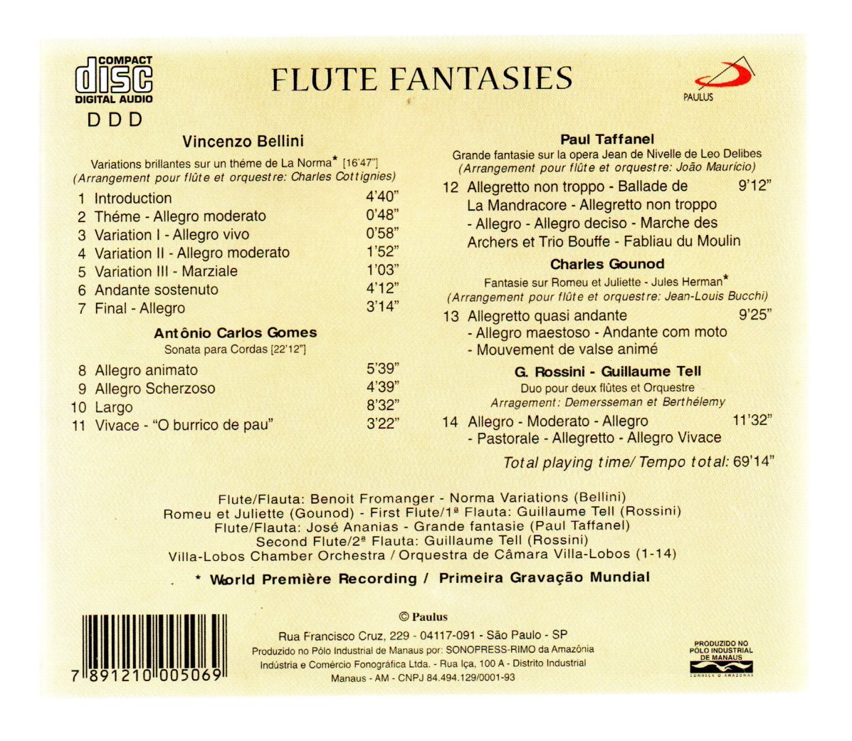CD FLUTE FANTASIES-BELLINI ROSSINI TAFFANEL