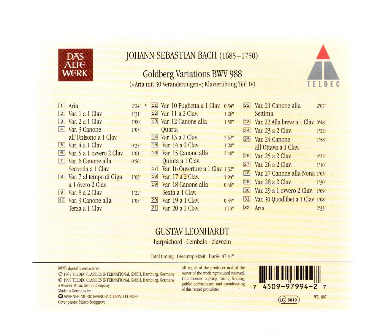 CD Goldberg Variations Bach Leonhardt