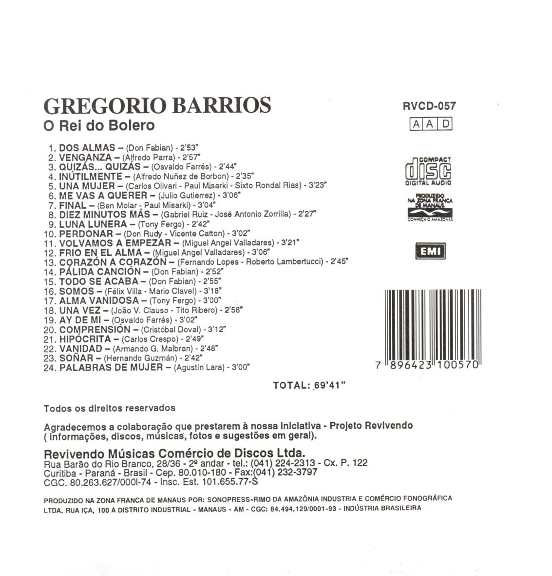 CD GREGORIO BARRIOS-REVIVENDO O REI DO BOLERO