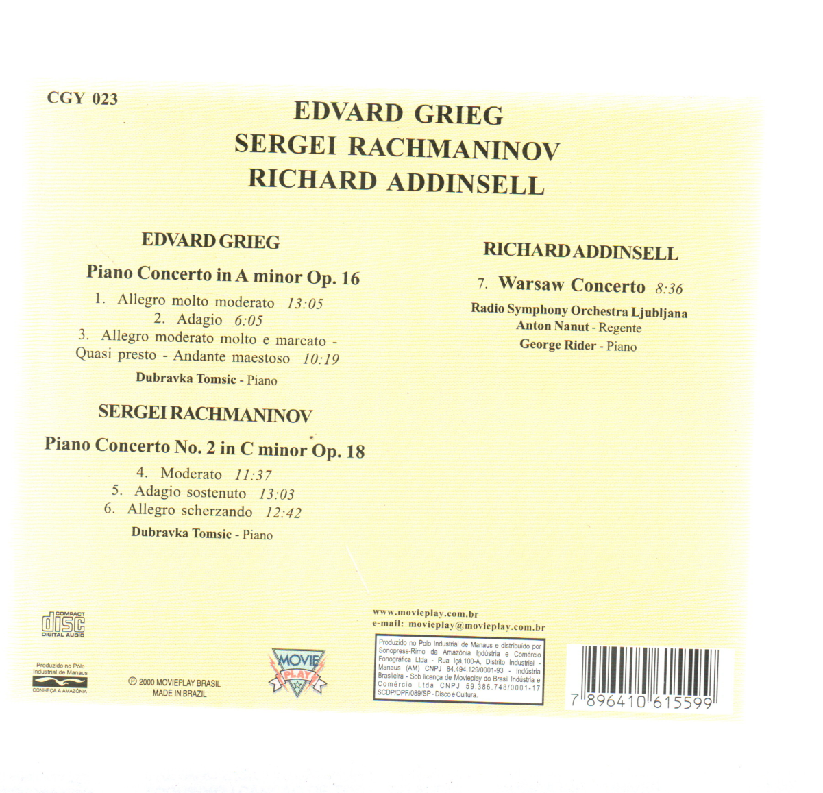 CD GRIEG RACHMANINOV ADDINSELL