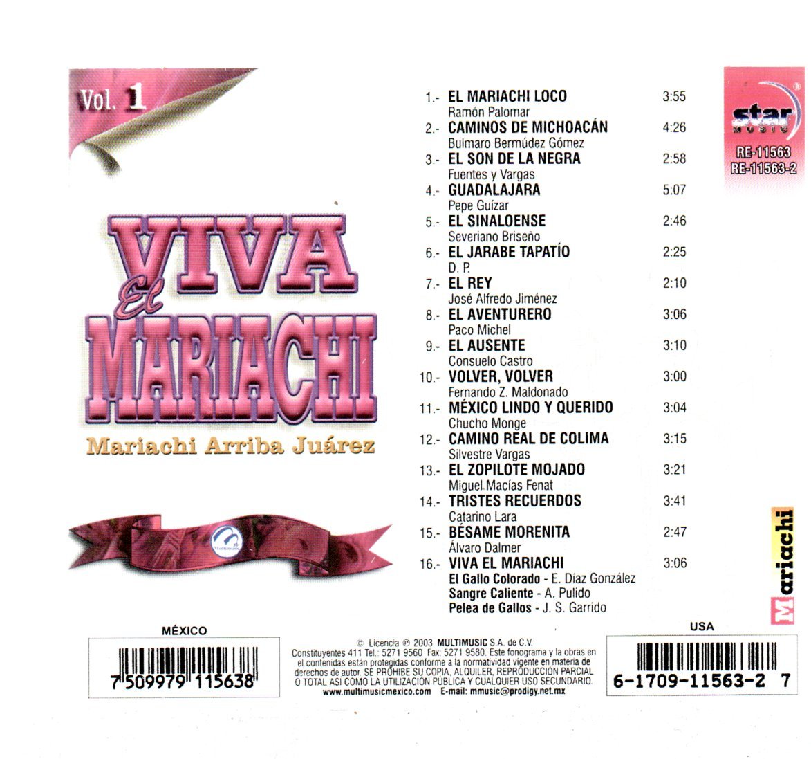 CD MARIACHI-VOL 1 VIVA EL MARIACHI COM EL