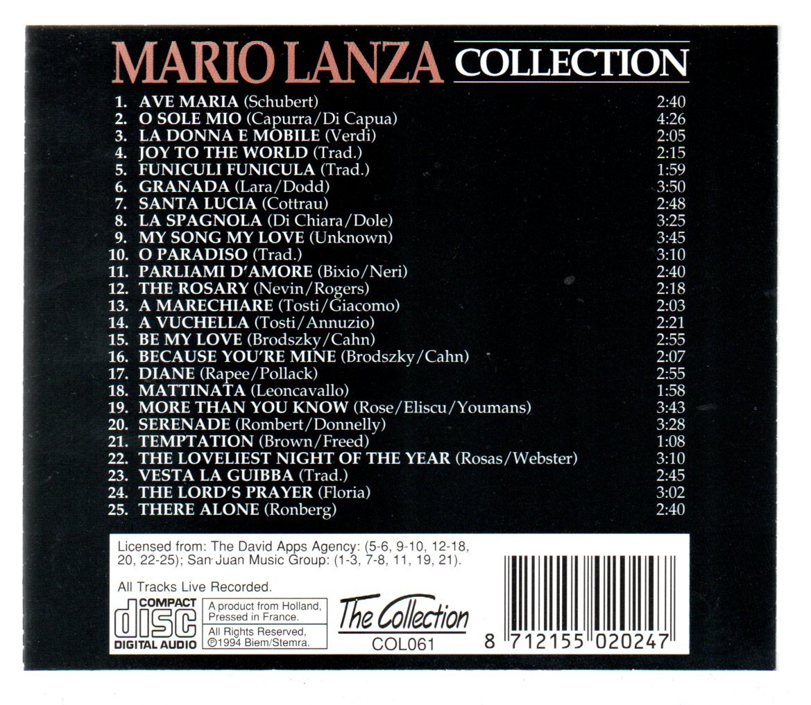 CD MARIO LANZA: COLLECTION 25 SONGS