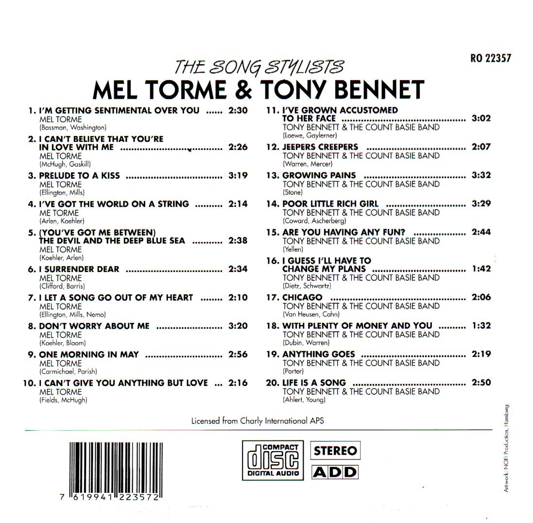 CD MEL TORME E TONY BENNETT- THE SONG STYLIST