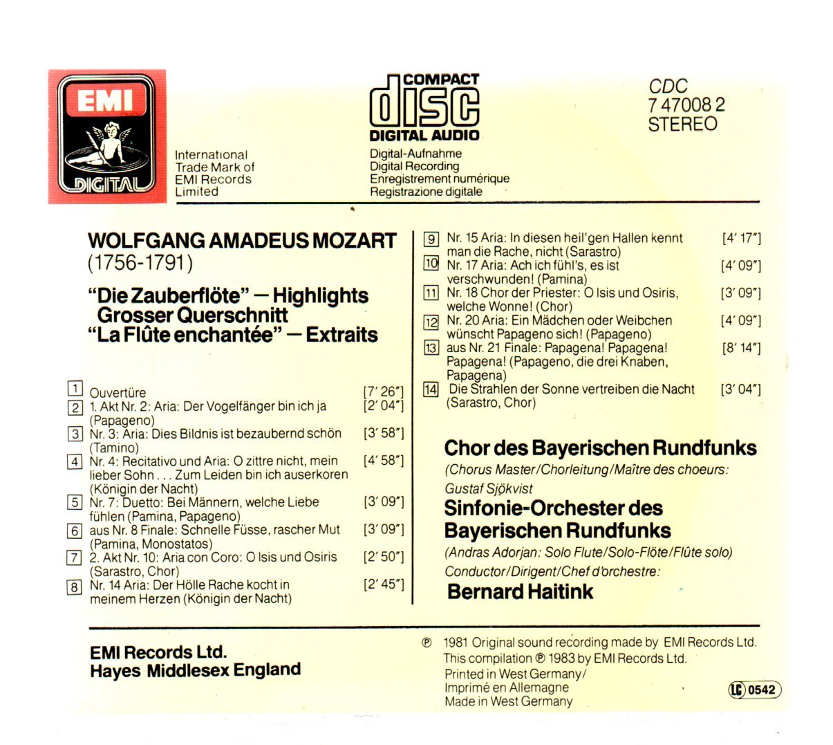CD MOZART – DIE ZAUBERFLOTE GOSSER QUERSCH
