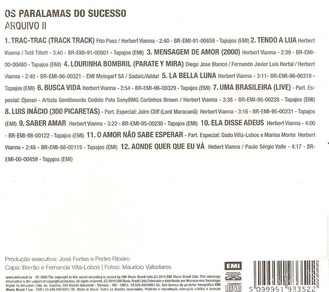 CD OS PARALAMAS DO SUCESSO – ARQUIVO II – NOVO DIGIPACK***