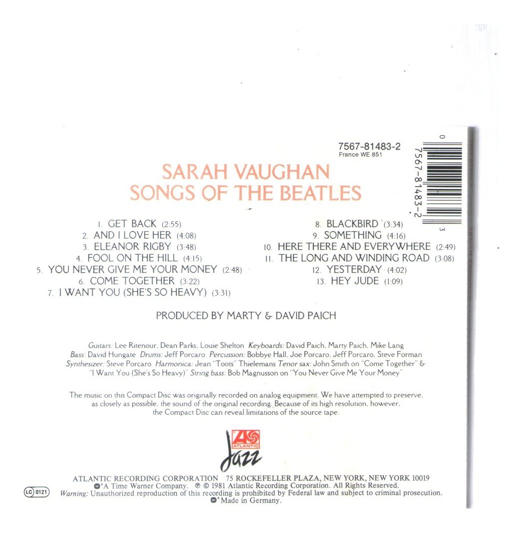 Cd Sarah Vaughan – Songs Of The Beatles