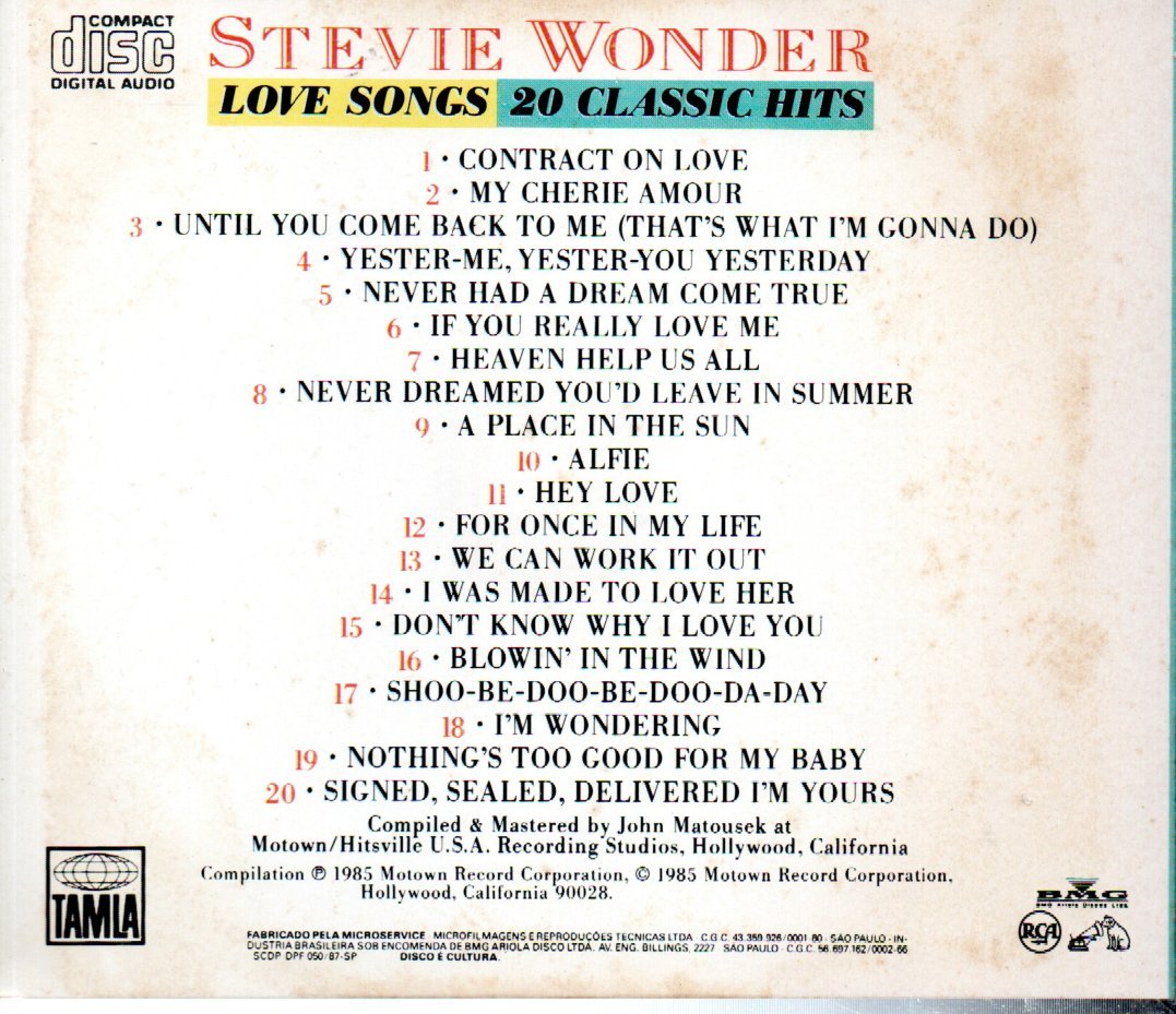 CD STEVIE WONDER: LOVE SONGS 20 CLASSIC HITS