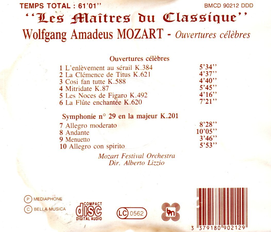 CD W.A. MOZART: OUVERTURES CELEBRES