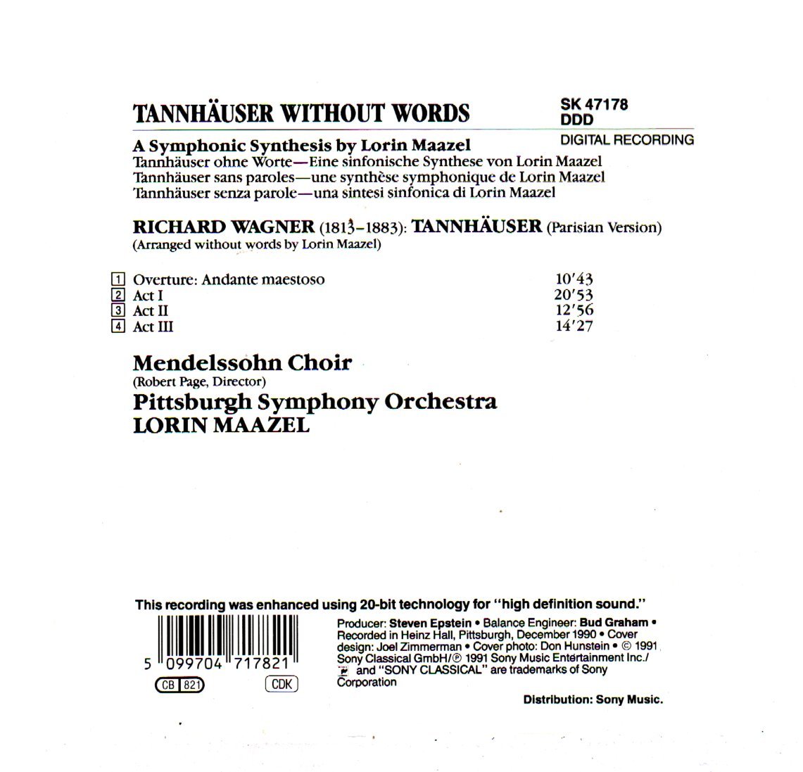 CD WAGNER TANNHAUSER W.WORDS-PITTSBURGH MAAZEL