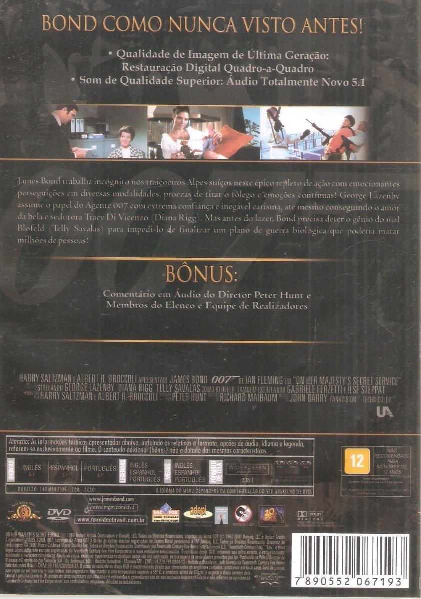 Dvd 007 A Serviço Secreto De Sua Majestade