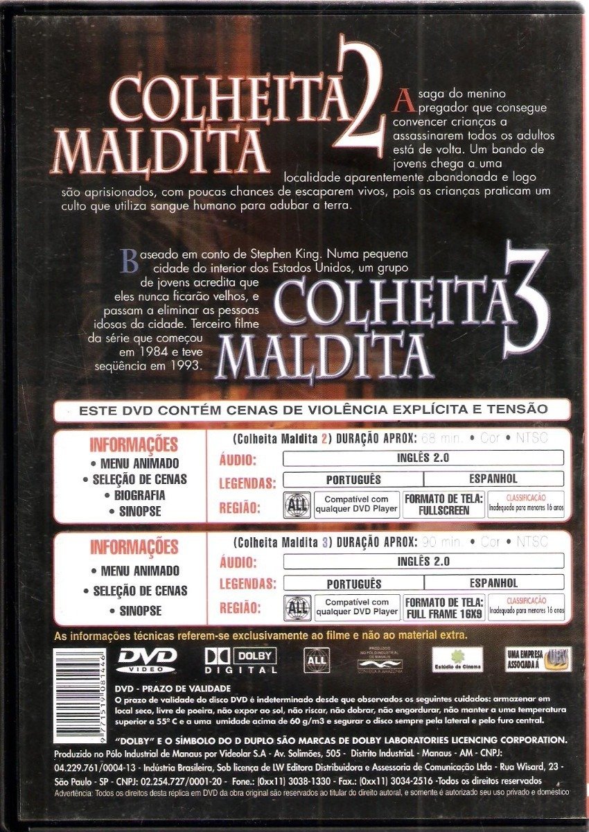 Dvd Colheita Maldita 2 / Colheita Maldita 3