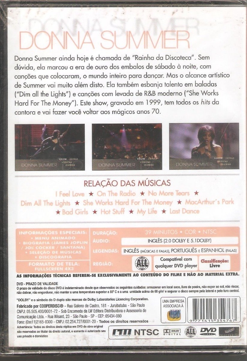 Dvd Donna Summer – EDIÇÃO ESPECIAL NOVO LACRADO ORIGINAL