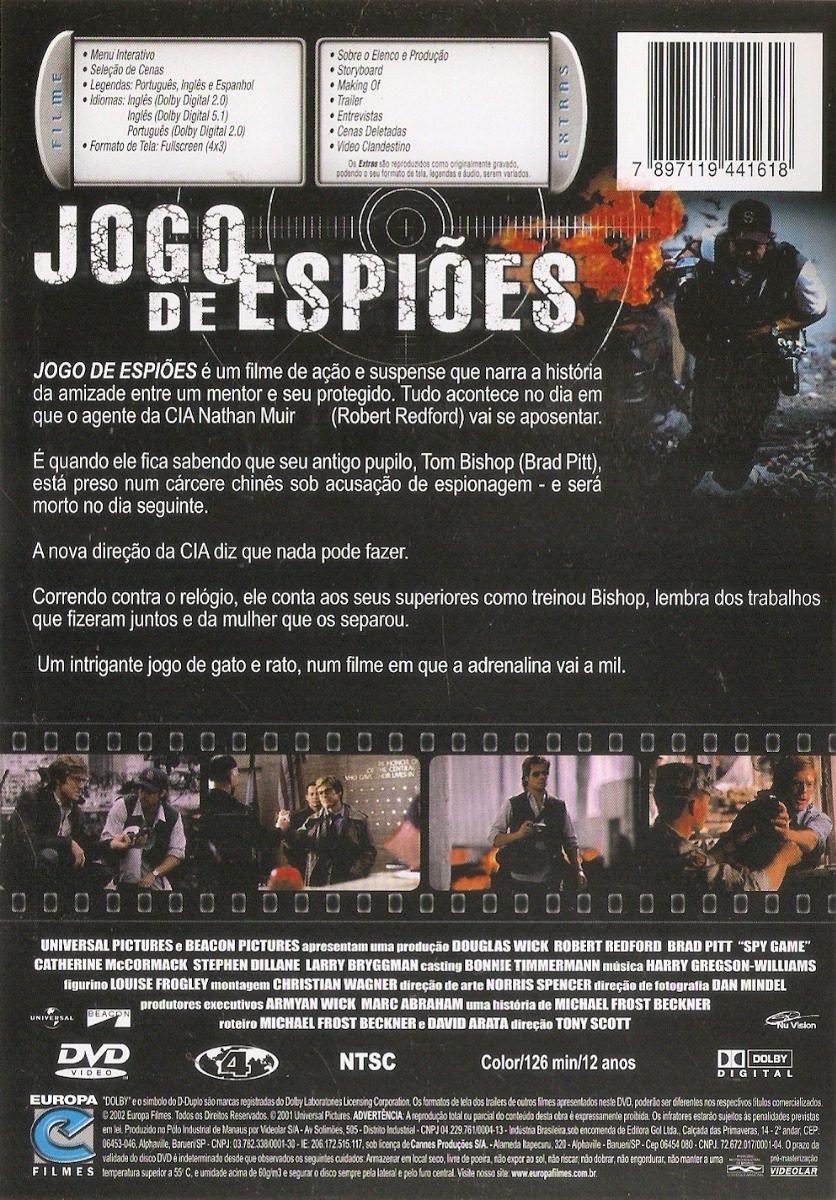 Dvd Jogo De Espióes – Brad Pitt/ Robert Redford