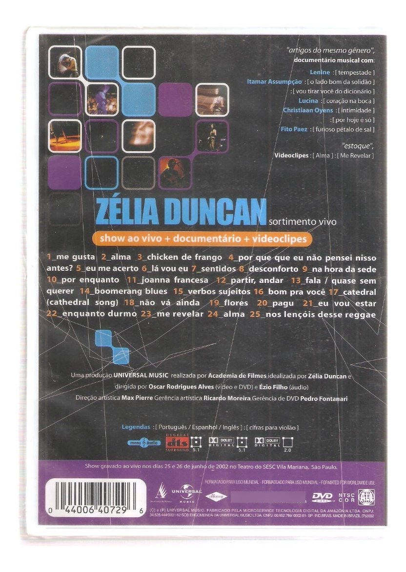 Dvd Zélia Duncan – Sortimento Ao Vivo