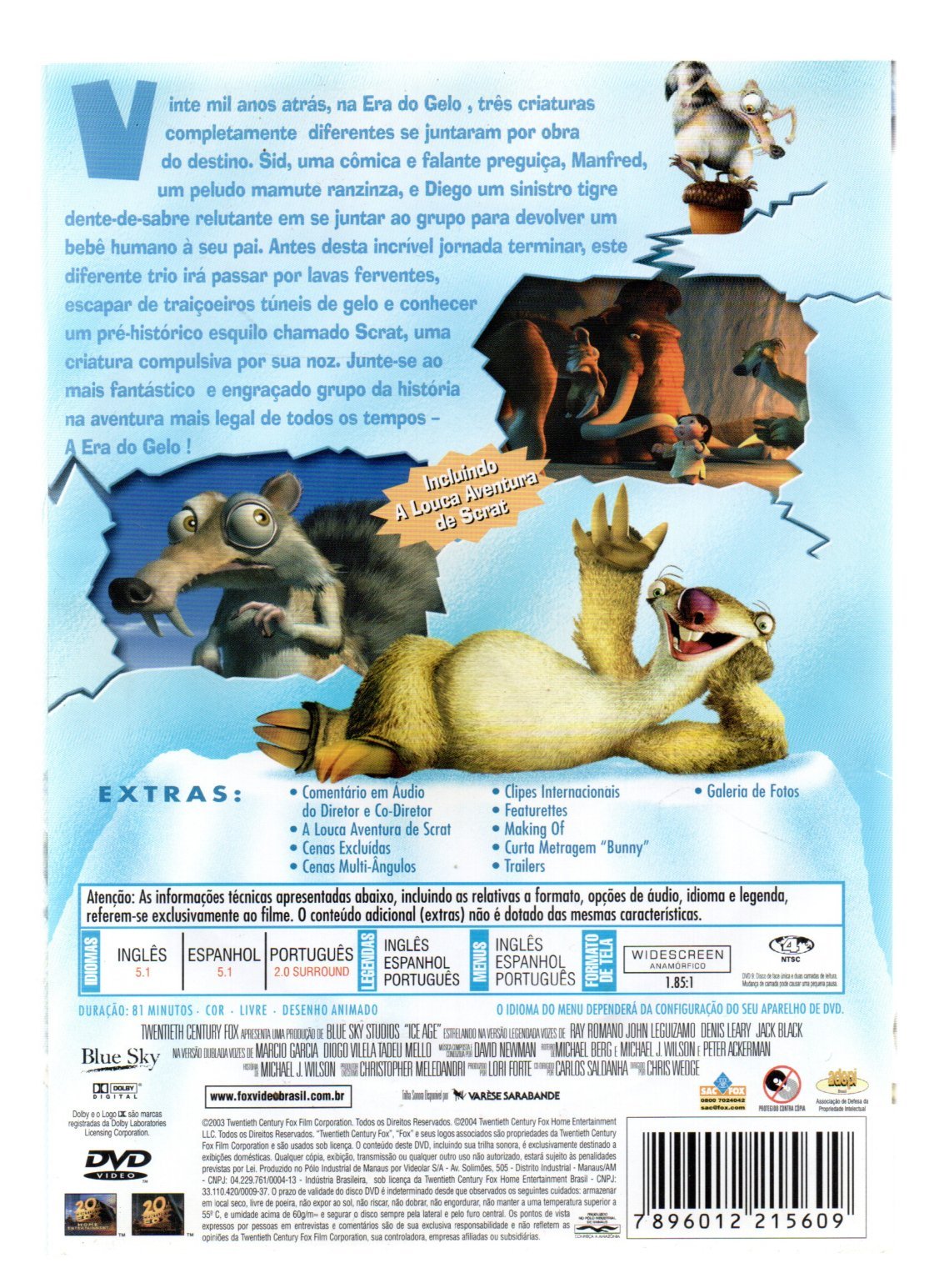 KIT 3 DVD’S A ERA DO GELO FILMES 1 2 E 3